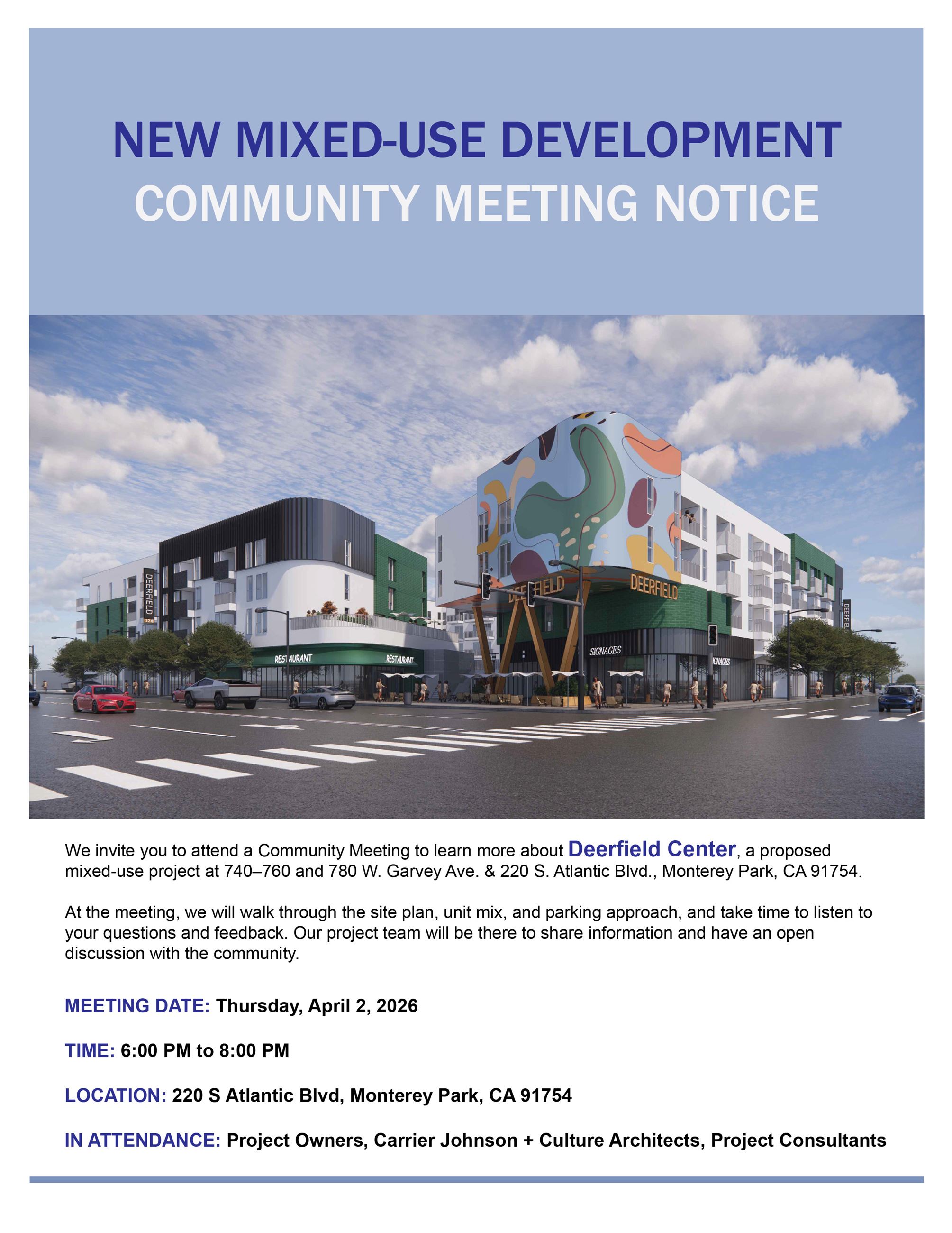 • Date: Tuesday, March 10, 2026 - 122 W Garvey - New Mixed Use Development - Click HERE to view flyer.