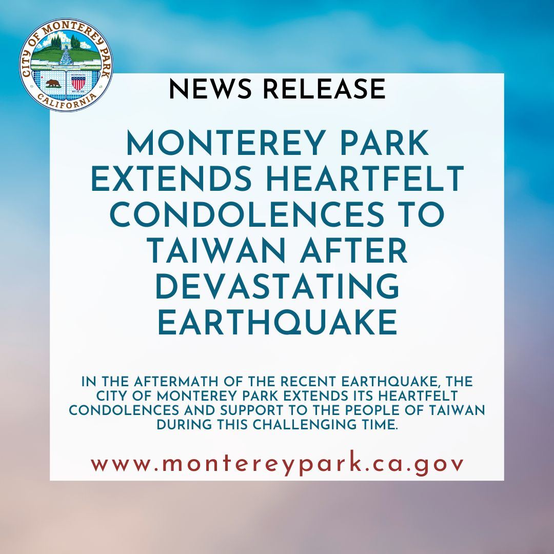 In light of this devastating event, Monterey Park sends our thoughts and prayers to the people of Taiwan and recognizes the resilience and strength of the Taiwanese people as they work towards recovery.
